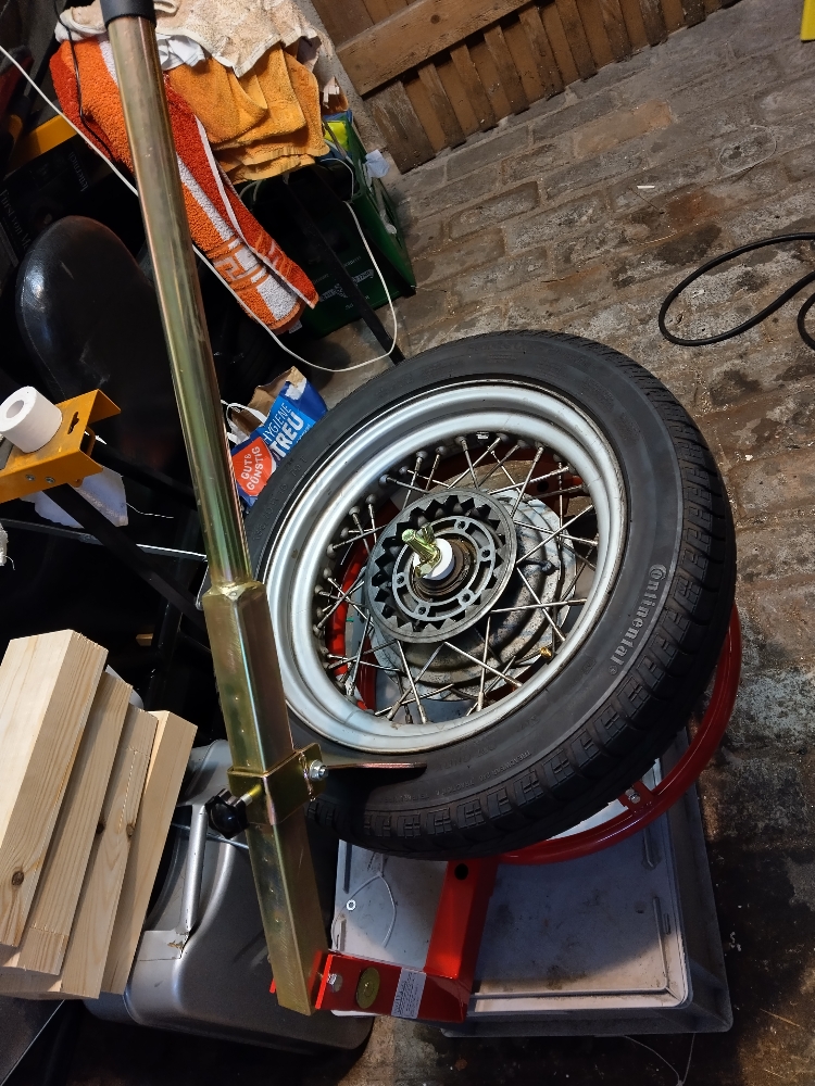 Meinen Reifenwechsler habe ich auf einer Holzplatte an die Wand geschraubt und mit ein wenig zu übender Technik geht das inzwischen ganz gut.