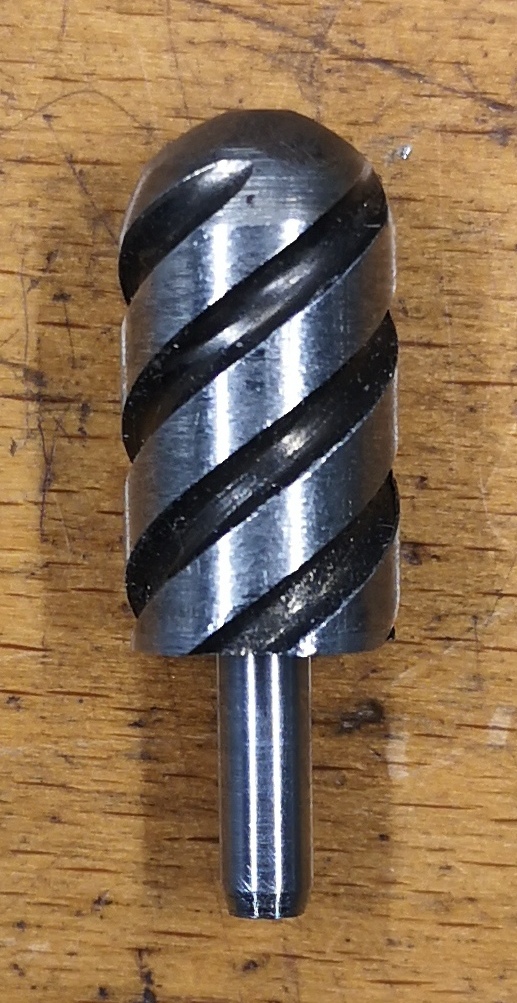 So ein Ende aus Silberstahl herzustellen und zu härten wäre im Prinzip kein Problem, wären da nicht diese vier eingefrästen Rillen mit einer Steigung von 15mm, die ich mit meinen Fertigungsmöglichkeiten nicht fräsen/drehen kann. Und um die geht dieses Hirnstürming.