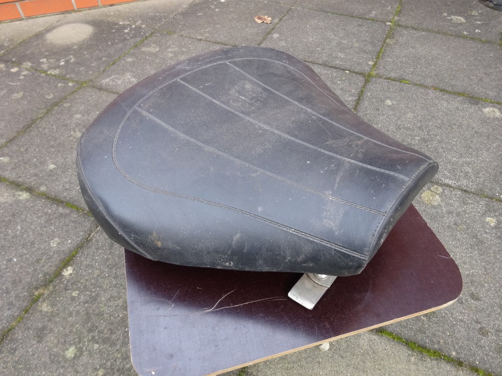 In meiner Garage liegt schon seit einiger Zeit ein Guzzi-Sitz im Weg, vermutlich von einer Falcone. Die Halterungen sind passend für Tonti-Rahmen.