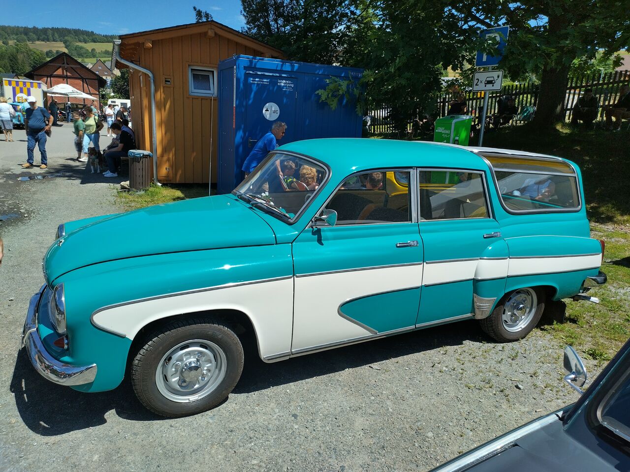 In der Nähe von Jöhstadt bekam ich Hunger und, wie es der Zufall wollte, fuhr ich an einem Oldtimertreffen vorbei. Die haben doch bestimmt eine Bratwurst! (Hatten sie, war aber alle. Hab dann einen adäquaten Ersatz bekommen).