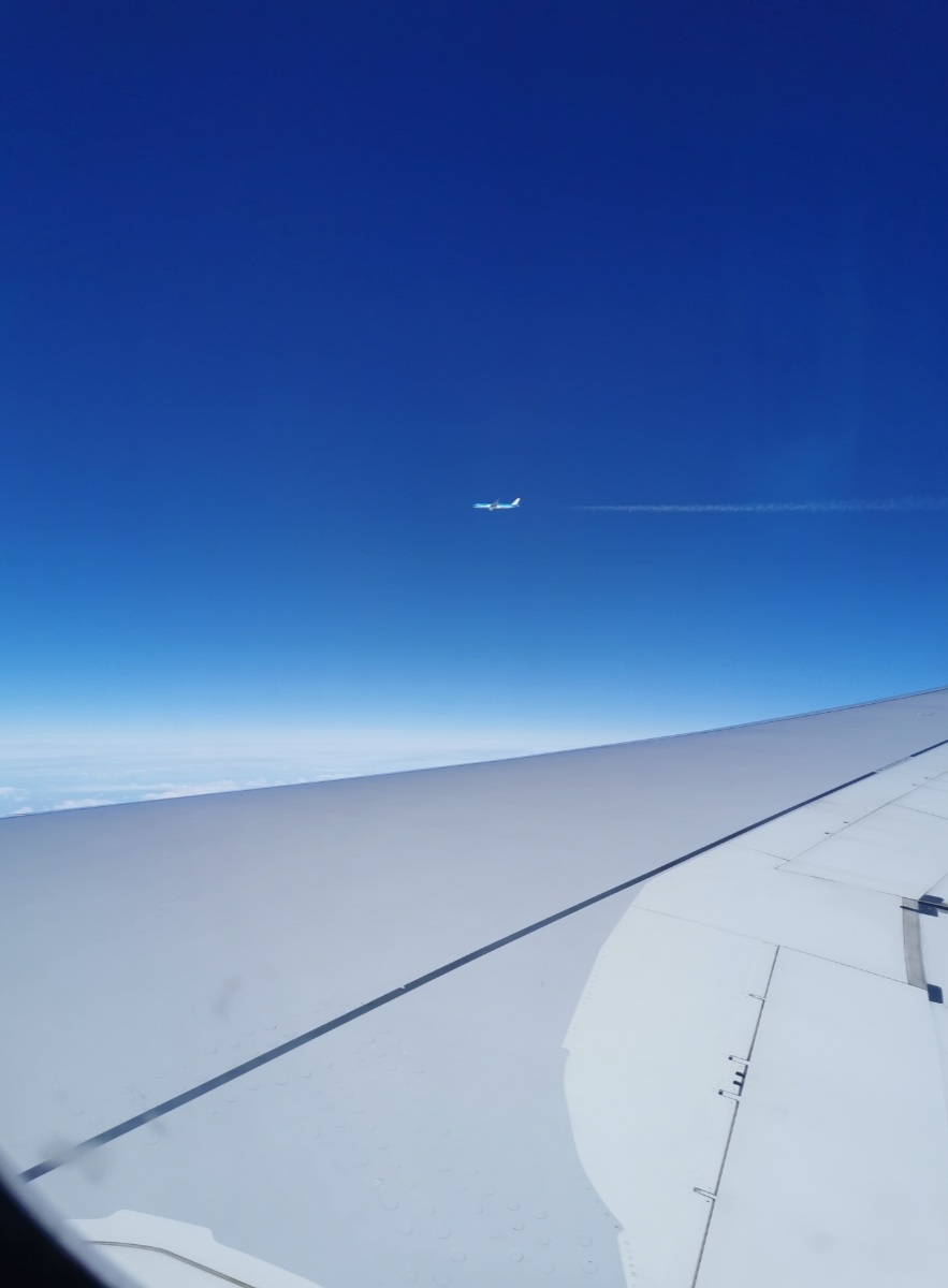 Ich hatte den Flug extra ab Hannover gebucht, mit der Überlegung, dass ich so per Deutschlandticket mit öffentlichen Verkefrsmitteln sowohl zum Flughafen, als auch wieder nach Hause komme. Allerdins ist es mir weder in der DB-Navigator-App, noch am PC gelungen ein Ticket zu kaufen. Dafür bin ich dann zum Bahnhof an den Schalter gefahren. (Um es vorwegzunehmen, es war auch nicht möglich das Ticket per App zu kündigen) Irgendwan war alles gepackt, die Tour- TShirts bedruckt und es ging los. Mit dem drittletzten Zug, man weiß ja nie. Bis Hannover ging alles gut, dann fiel die S-Bahn zum Flughafen aus. Die App wusste davon nichts, und war der Meinung ich wäre noch unterwegs und bot mir daher keine Alternativen an. Eine heimreisende Bahn-Mitarbeiterin nam mich dann mit in den nächsten Zug und ab da lief es wieder. Es folgten vier Stunden warten aufs Einchecken und weitere zwei bis zum Boarding. 40 Minuten Flug nach Amsterdam und dann weitere zwei Stunden Warten. Allerdings gab es hier Bänke wo man sich auch mal hinlegen konnte. Der Flug nach Houston war dann wieder sehr, sehr, sehr lang. Zu sehen gab es fast nur Wolken, und man musste sich den Hals sehr verdrehen um hinter dem Flügel nach unten sehen zu können. Da überlege ich ernsthaft, ob ich auf dem Rückweg nicht lieber auf einen Gangplatz umbuche wo man vielleicht die Beine mal schräg ausstrecken kann.