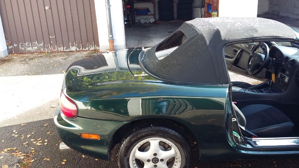 Pezi trennt sich von ihrem Cabrio, es wird zu wenig bewegt. Baujahr 2001, 1,6Liter DOHC-Motor, Kilometer sind glaub ich 140.000km, muss ich nochmal genauer schaun. Das Dach wurde beim Kauf vor 6 Jahren erneuert, ist dicht und in gutem Zustand, er musste bei uns auch nie draussen übernachten.
