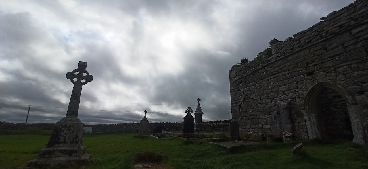 Der Rückweg führt uns quer über den Karst zurück. Wir stoppen noch an der Carran Church, einer Ruine aus dem 13. Jahrhundert mit Friedhof.