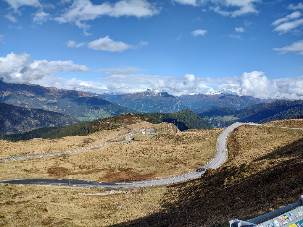 Der zweite Tag begann sonnig – ein echter Glücksgriff für den Herbst. Der Weg Richtung Reschenpass war allerdings von starkem Verkehr geprägt. Apfelernte und Rückreiseverkehr machten die Straßen voll. Ab Preds fuhr ich schließlich alleine weiter.