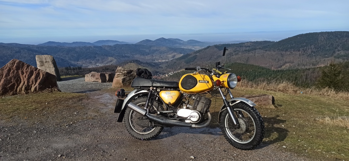 Ich fahre die "Rote Lache" hoch, die nach Baden Baden führt. Eine sehr kleine, unglaublich schlechte und kurvenreiche Straße, die sich dramatisch in die Höhe schraubt.