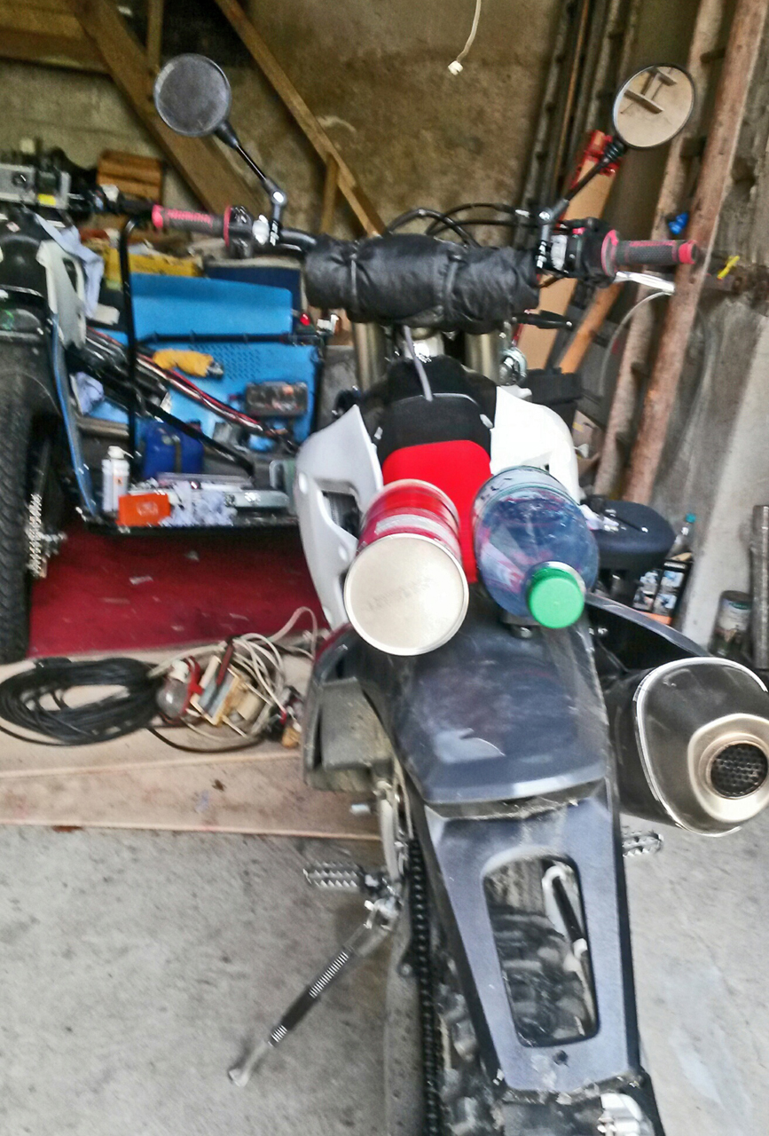 Da das Neueisen vorwiegend für Tageserkundungsfahrten in zukünftigen Urlauben gedacht ist und dorthin auf dem Pickup reisen dürfen soll, stellte sich die Frage des Transports von Reichweitenzusatzsprit, Werkzeug, Ersatzteilen (Schläuche) sowie Regenklamotten. Und so.