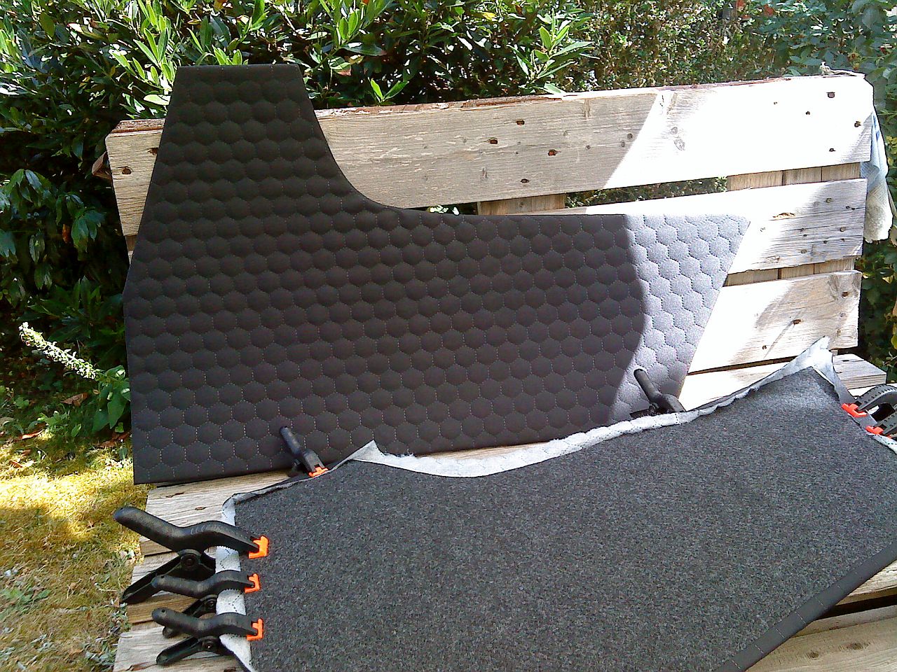 Achso, ein paar Details vielleicht noch... Die Rückenlehne ist aus Multiplex, hinten Filz, vorne 4cm (oder 6? 5?) Verbundschaum,