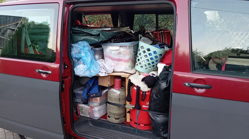 Gegen 13.00 Uhr war die Schlüsselübergabe und Gitti hat sofort den Termin für 2027 gebucht. Der Bus war um 14:00 fertig gepackt ( System Tetris) und der Anhänger mit dem Stromaggregat hing am Haken. Gitti fährt den Bus nach Rosbach und Felix hat nun die Aufgabe dem THW Hünfeld die Leihgaben zurückzugeben und sein Material einzulagern. Der Anhänger muss ja für seinen Bagger wieder frei sein. Noch einen letzten Kaffee bei Maria und wir fahren heim. Gitti hatte wohl Heimweh denn ich weiss jetzt dass die Tachonadel vom Ömmes die 140 erreicht und der Motor sich nicht gequält hat. Wow, welch ein Gerät!