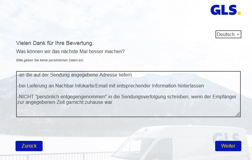 Zustellung geplant für Mittwoch früh, Empfänger hat dann meinen Namen noch an sein Klingelschild gepappt.