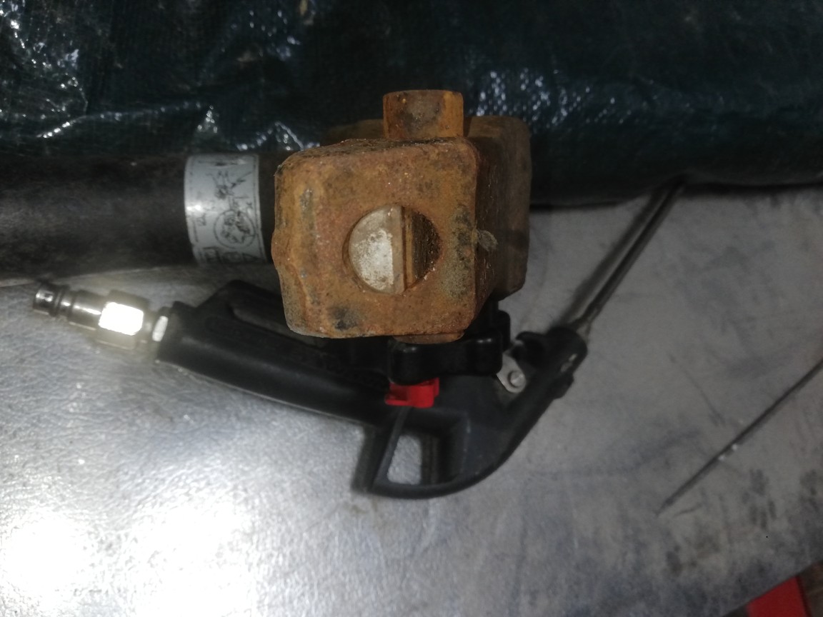 Der Drehknopf ließ sich dann mit der großen WaPuZa vorsichtig drehen, dann ging das Zeugs raus (nach unten).